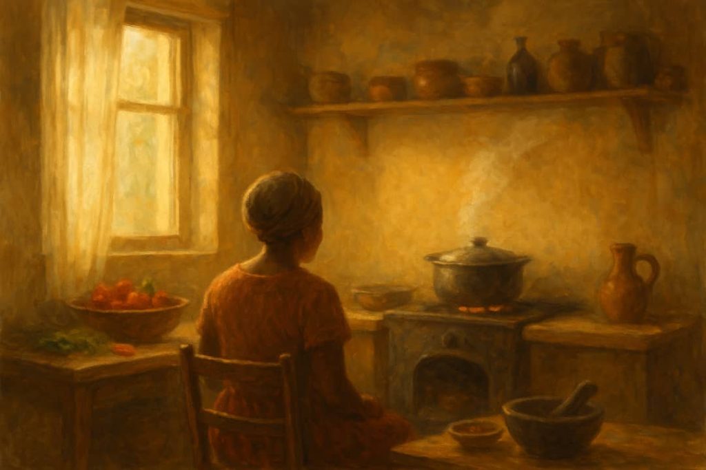 The pots will sit cold, but I will breathe them alive with memory.